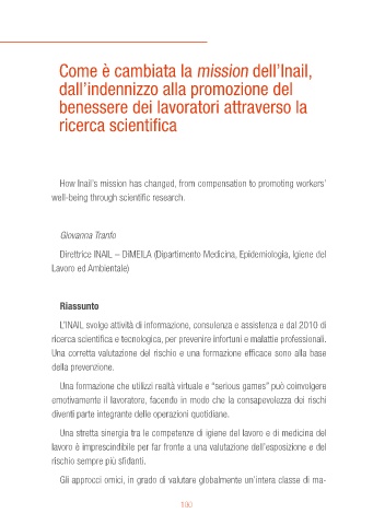 ricerca scientifica e tecnologica, per prevenire infortuni e malattie professionali.