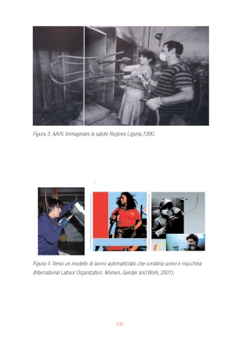 Figura 3. AAVV. Immaginare la salute Regione Liguria,1990. Figura 4. Verso un modello di lavoro automatizzato che combina uomo e macchina (International Labour Organization. Women, Gender and Work, 2001). 126