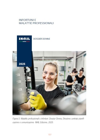 Figura 5. Malattie professionali e infortuni. Dossier Donna, Direzione centrale pianifi- cazione e comunicazione INAIL Edizione, 2025. 127