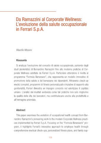 porate Wellness adottate da Ferrari S.p.A. Particolare attenzione è rivolta al