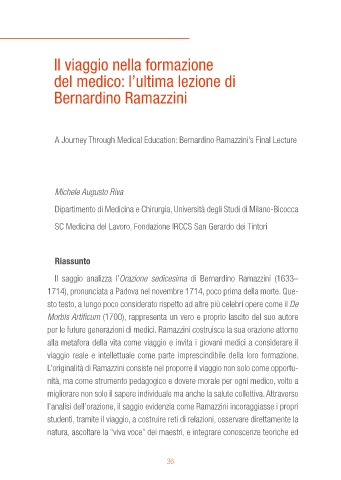 L’originalità di Ramazzini consiste nel proporre il viaggio non solo come opportu-