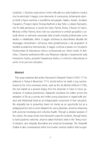 the oration, the essay shows how Ramazzini urged his students, through travel,