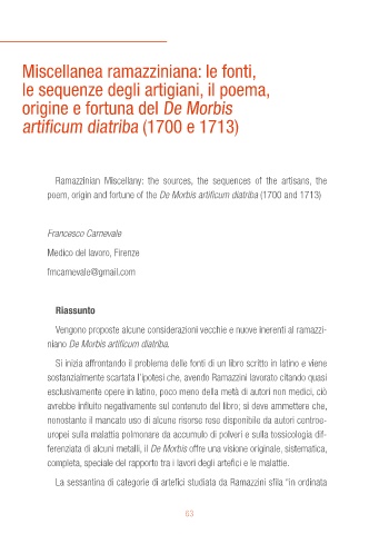 poem, origin and fortune of the De Morbis artificum diatriba (1700 and 1713)
