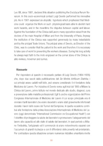 Medicina del Lavoro. Per iniziativa di Devoto sorse agli inizi del ‘900 a Milano la